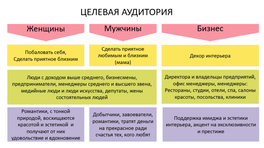 Цільова аудиторія. Опис майбутніх споживачів допомагає визначити, хто може стати покупцями бренду, виявити потреби, інтереси і проблеми цієї аудиторії.