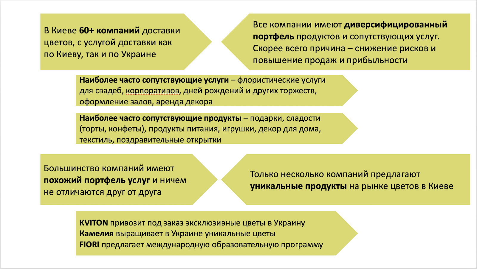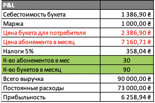 Сервіс робить доставку букетів три рази на місяць, в інший час приміщення простоює, витрати на ПММ підтримку і рекламний бюджет високі. Далі рішення за власниками: розширити лінійку або залишитися з початковою ідеєю сервісу.