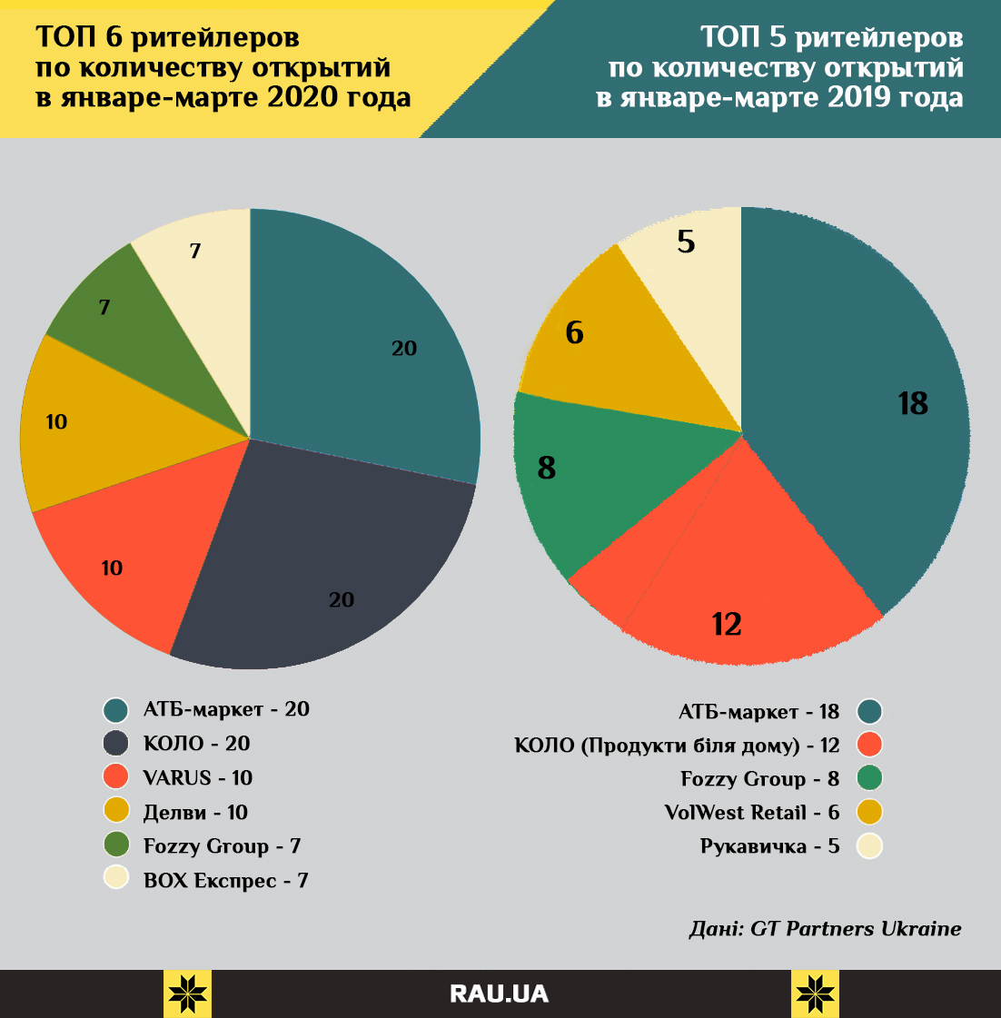 Хто з операторів української мережевого продуктового роздробу відкривав найбільше магазинів, які регіони стали пріоритетними для рітейлерів і як змінилися позиції в першій п’ятірці гравців за перші місяці 2020 року.