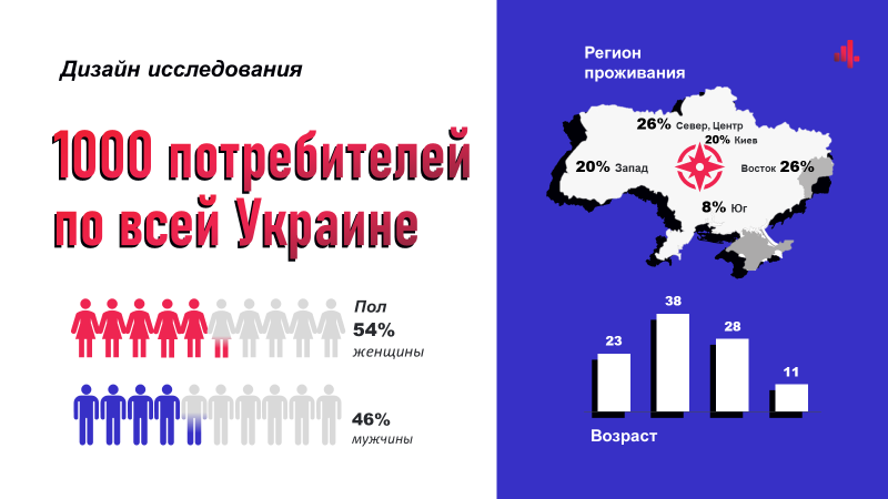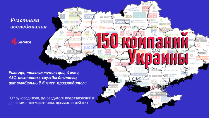 Вибірка В2В частини проекту складає 150 інтерв’ю з представниками бізнесу (переважно менеджмент ланок середнього і найбільш високого рівня відділів маркетингу і клієнтського досвіду), для частини В2С було проведено 1000 інтерв’ю із жителями міст 100тис+ по всій країні.