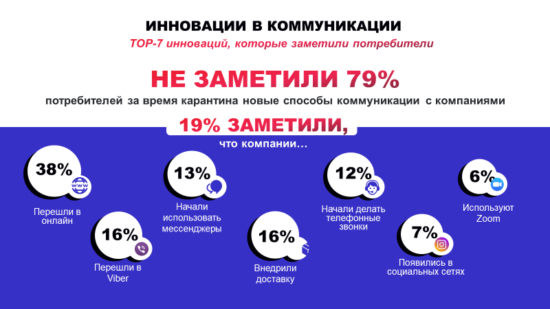 Але споживач не помітив і не оцінив старань. Те, що вчора було інновацією, сьогодні вже стало буденністю. 79% опитаних не помітили нових способів комунікації. Це сталося з різних причин: не скористалися, прийшли, коли зміни вже сталися, порівняли досвід із більш інноваційними компаніями.
