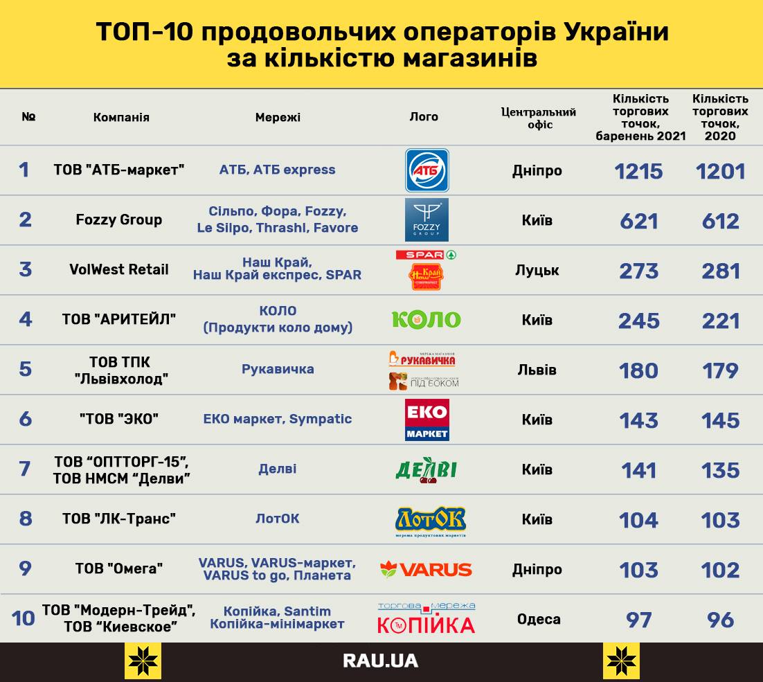 Топ-10 українських продуктових мереж за кількістю магазинів і темпами відкриттів