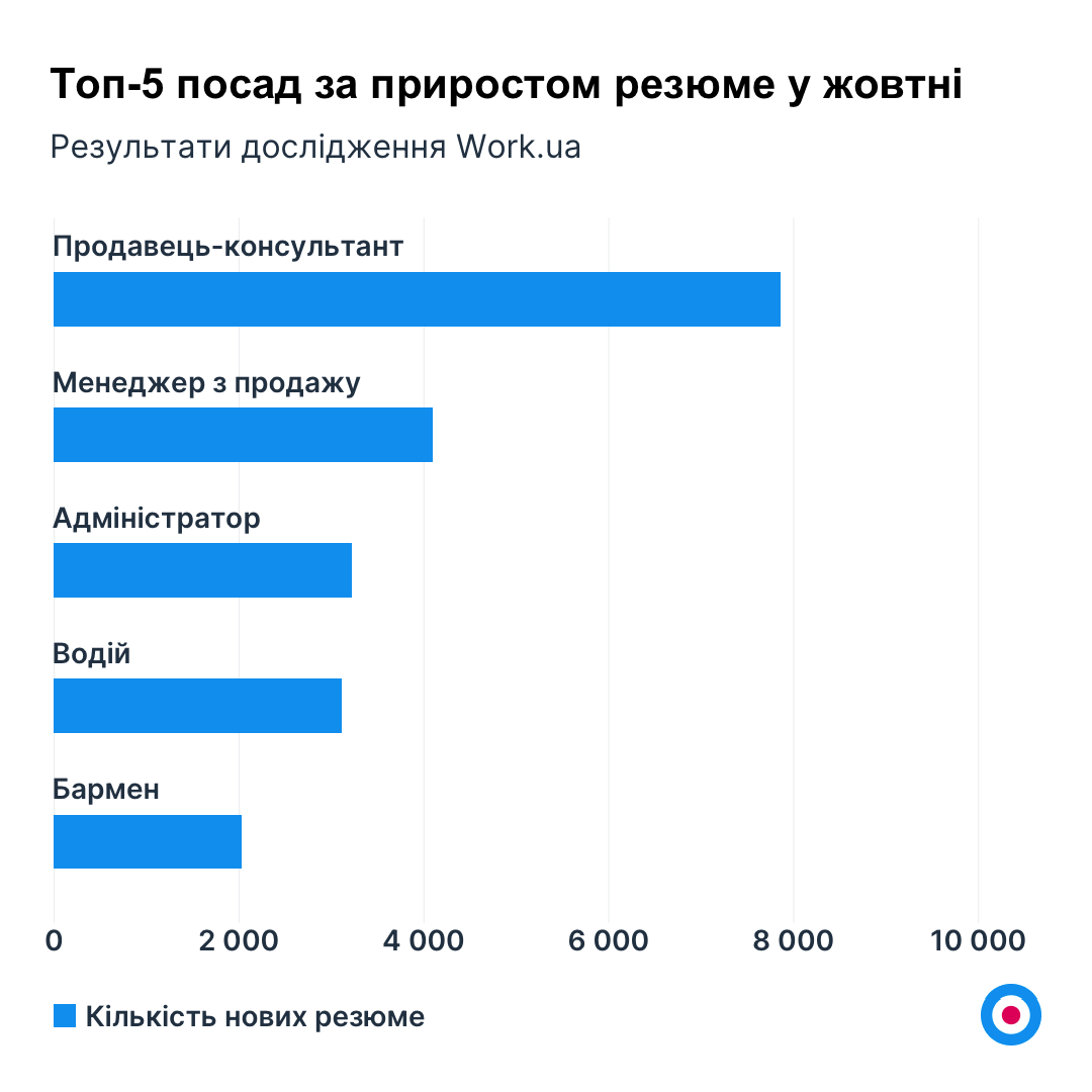 Пʼятірка регіонів за приростом резюме у жовтні: