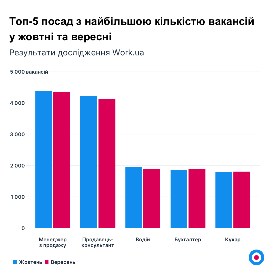Найбільший приріст вакансій у жовтні, як порівняти з вереснем, спостерігається в цих категоріях: