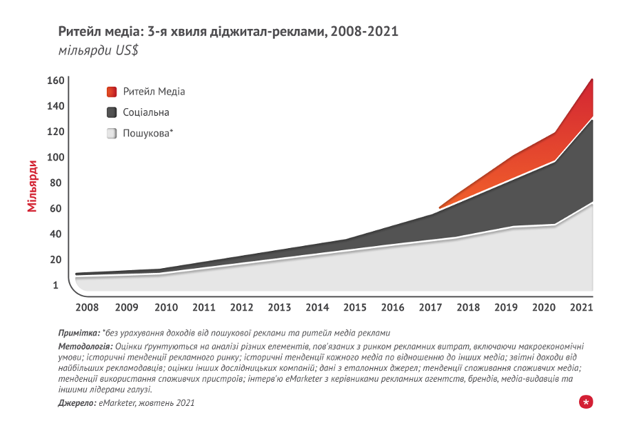 Таким чином, прискорене зростання онлайн-продажів та збільшення витрат на диджитал-рекламу надає e-commerce гравцям унікальну можливість збільшити свої прибутки завдяки рекламним бюджетам від брендів.