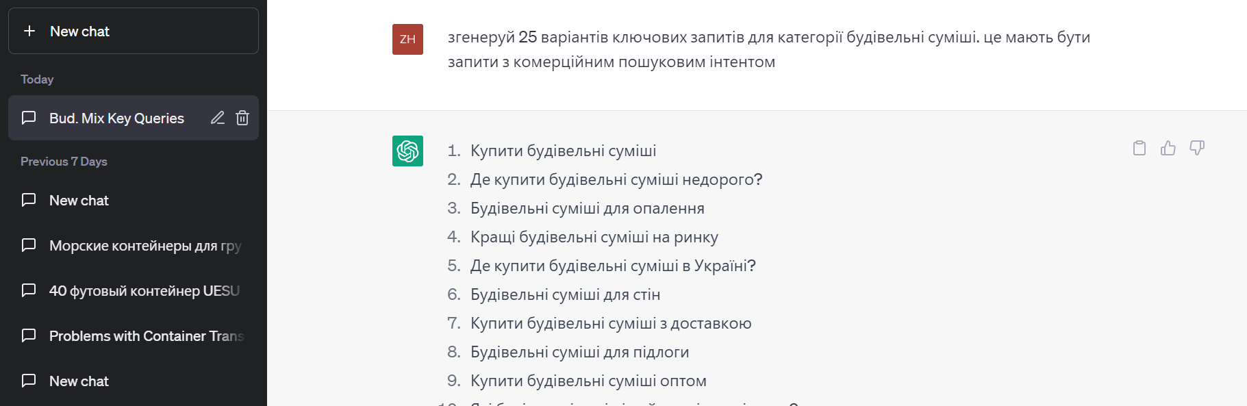 Згенерувати варіанти запитів з ChatGPT досить просто.