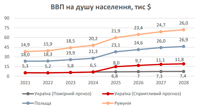 Що стосується ВВП на душу населення, то воно не зазнало скорочення через міграцію, але, якщо порівнювати в загальному, є значне відставання від країн-сусідів Польщі та Румунії.