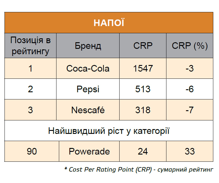Глобальний і європейський лідер Coca-Cola займає перше місце, і за ним слідують Pepsi та Nescafé.