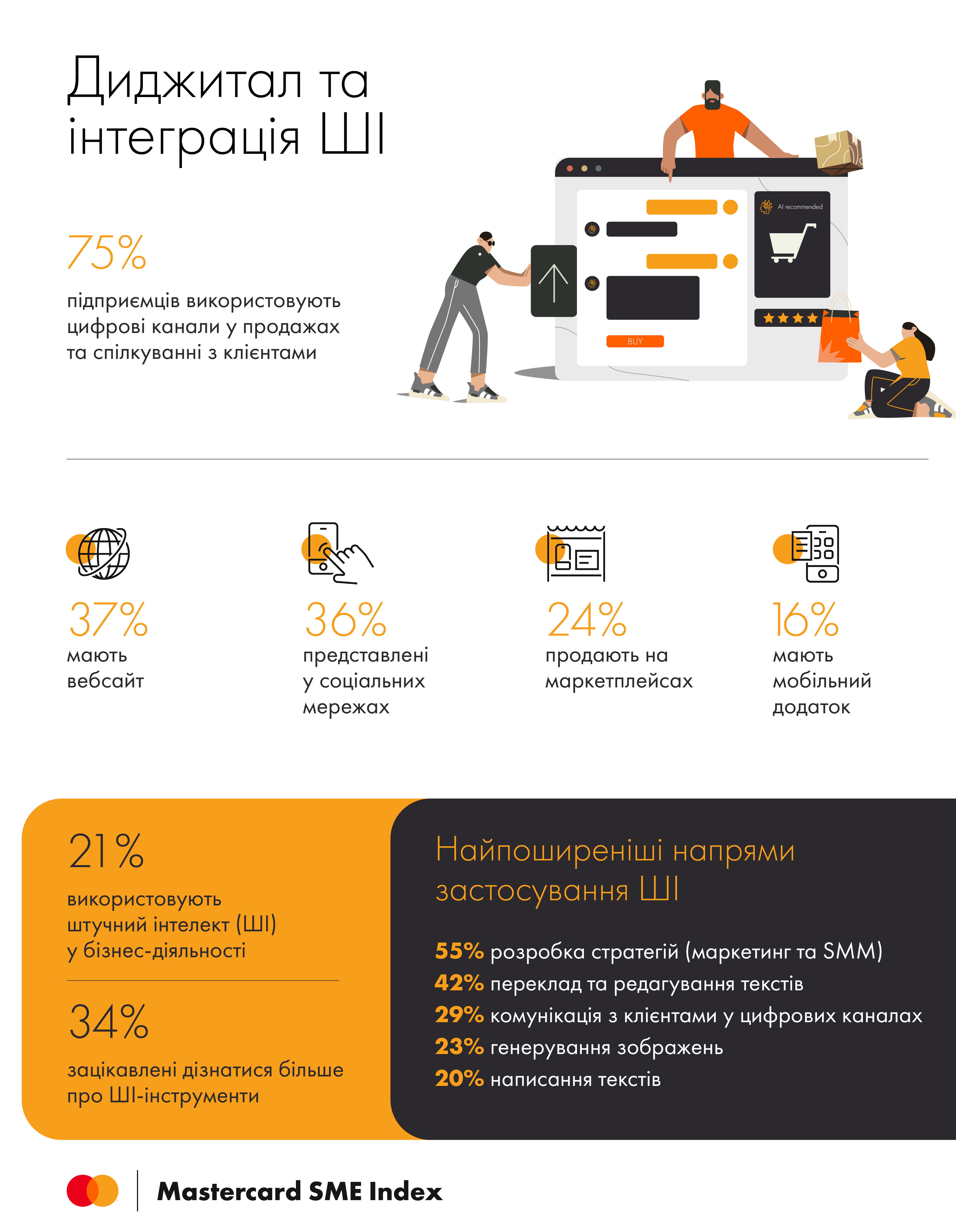 40% українських підприємців планують виходити на закордонні ринки, а кожен п’ятий користується ШІ — дослідження Mastercard