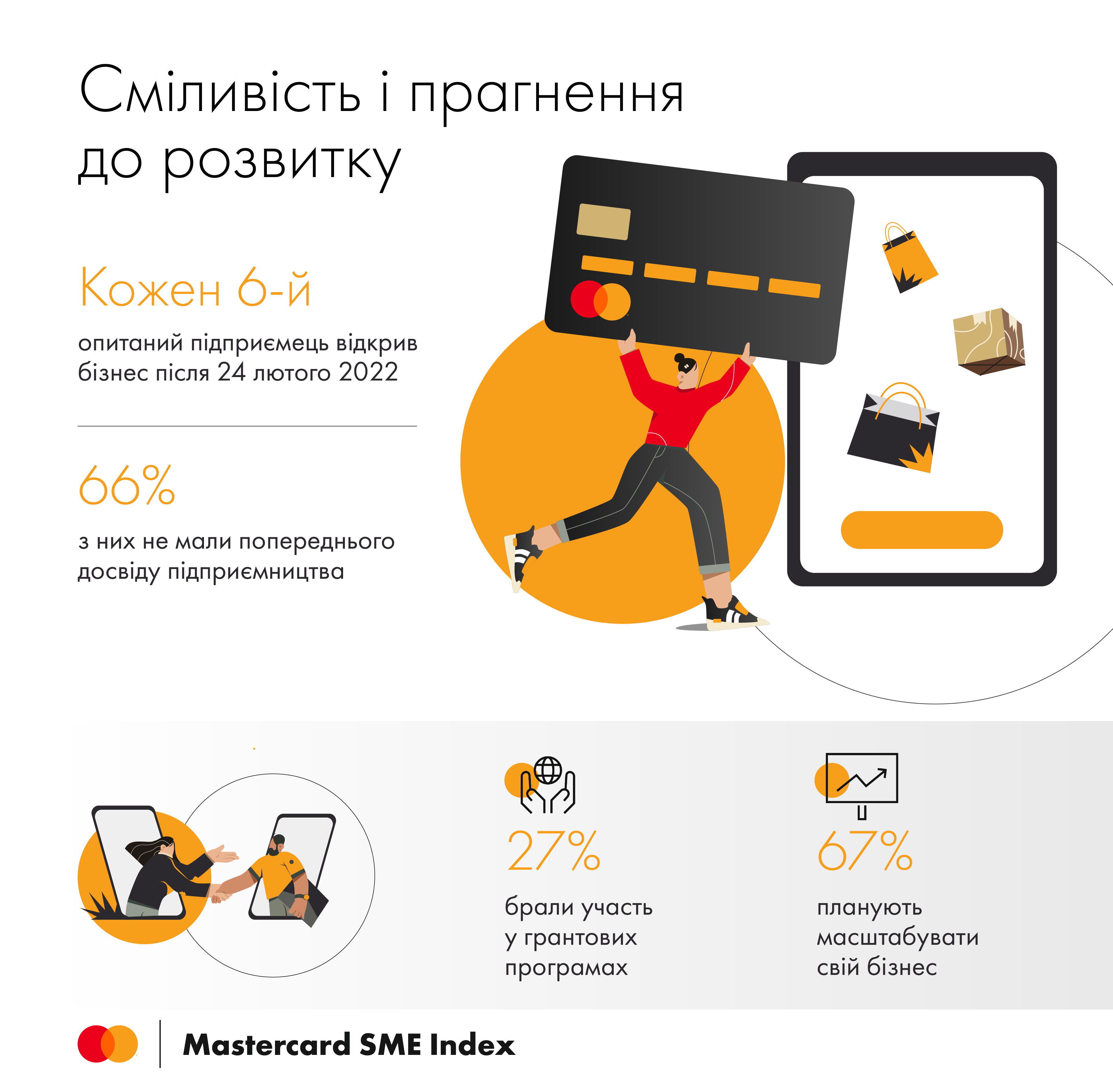 «Український бізнес завжди вирізнявся своєю гнучкістю та високим рівнем клієнтського сервісу. Сьогодні цифрові канали все більше виходять на перший план для підприємців як дієвий інструмент бізнес-стійкості та їхнього масштабування. Примітно, що кожного року кількість підприємців, у яких більша частина продажів припадає на безготівкові оплати, зростає на 7-10%, і сьогодні майже кожен п’ятий підприємець є повністю кешлес — отримуючи прибуток від своєї діяльності виключно в безготівковій формі», — зазначила Анжела Кашперук, віцепрезидентка з розвитку бізнесу Mastercard в Україні та Молдові.
