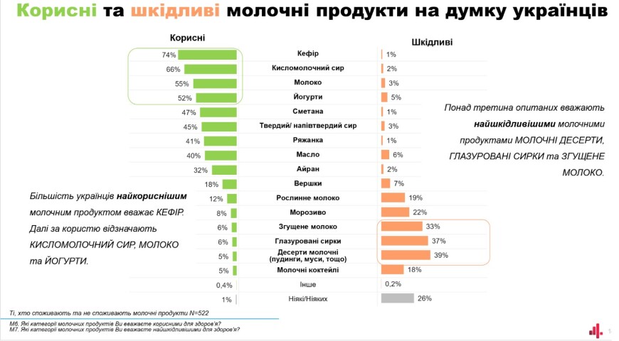 Кефір і кисломолочний сир сприймаються як найкорисніші, а глазуровані сирки та десерти — як «найбільш хімічні».