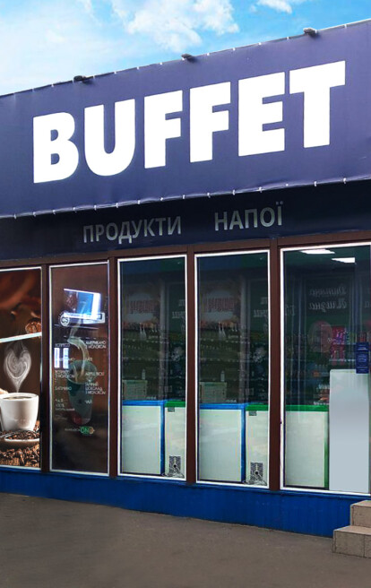 2) buffet (з англ.) — Буфет, шведський стіл. Наші магазини — це продукти, сигарети, алкоголь.