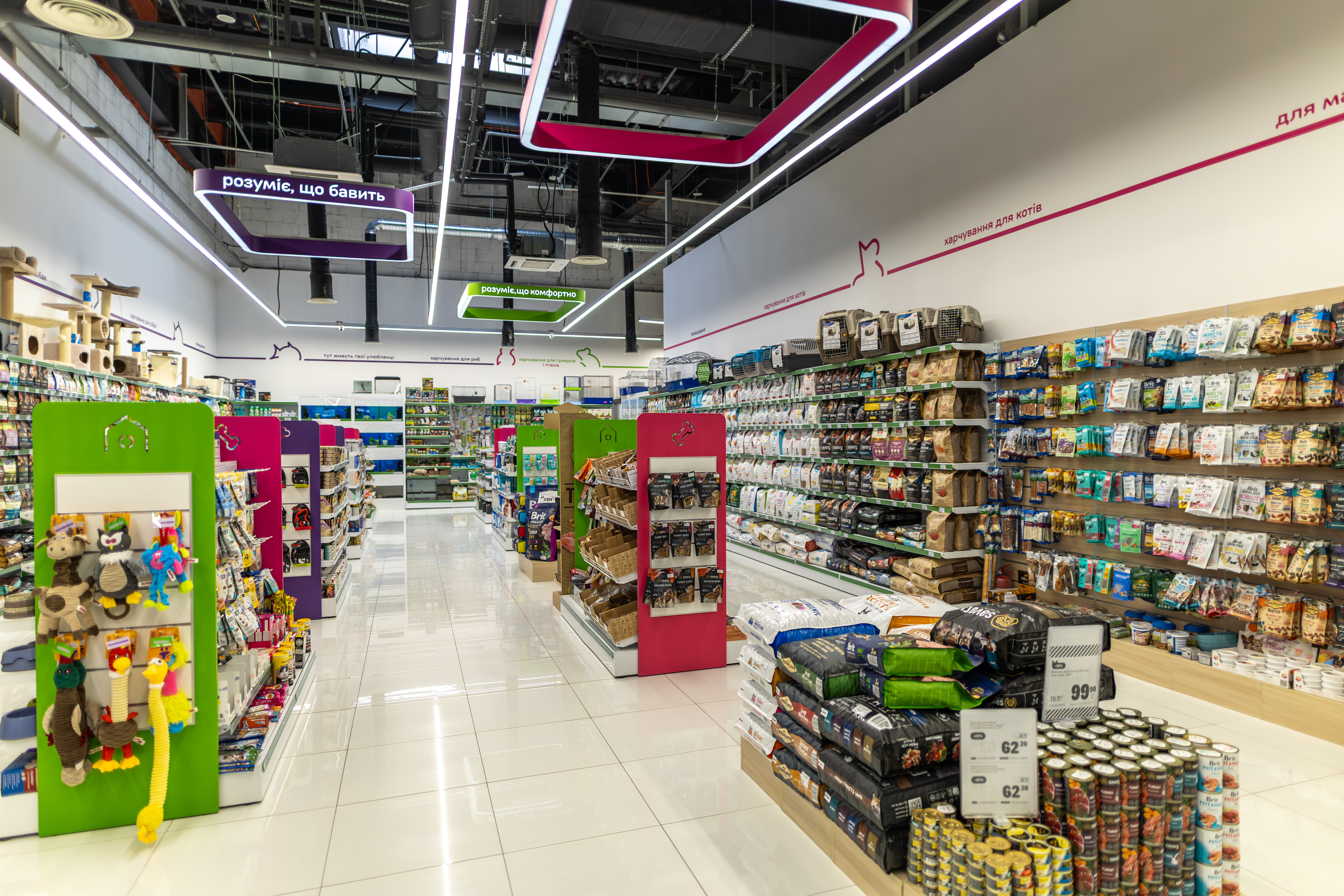 - спеціалізовані зоомагазини з професійними кормами, широким вибором аксесуарів, ветеринарних засобів тощо;
