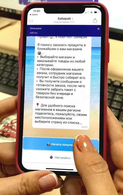 «Ми розуміли: якщо ми хочемо, щоб цей проект був дійсно затребуваним, web-платформи недостатньо — потрібні рішення для смартфонів. Тому ми підключили сервіс в Viber на базі чат-боту „Забирай“ — https://zabiray.online/. Його перевага — у відібраному асортименті з 2000 найбільш популярних продуктів і простому меню, в якому без зусиль розбереться будь-який користувач», — каже Дарина Бурак.