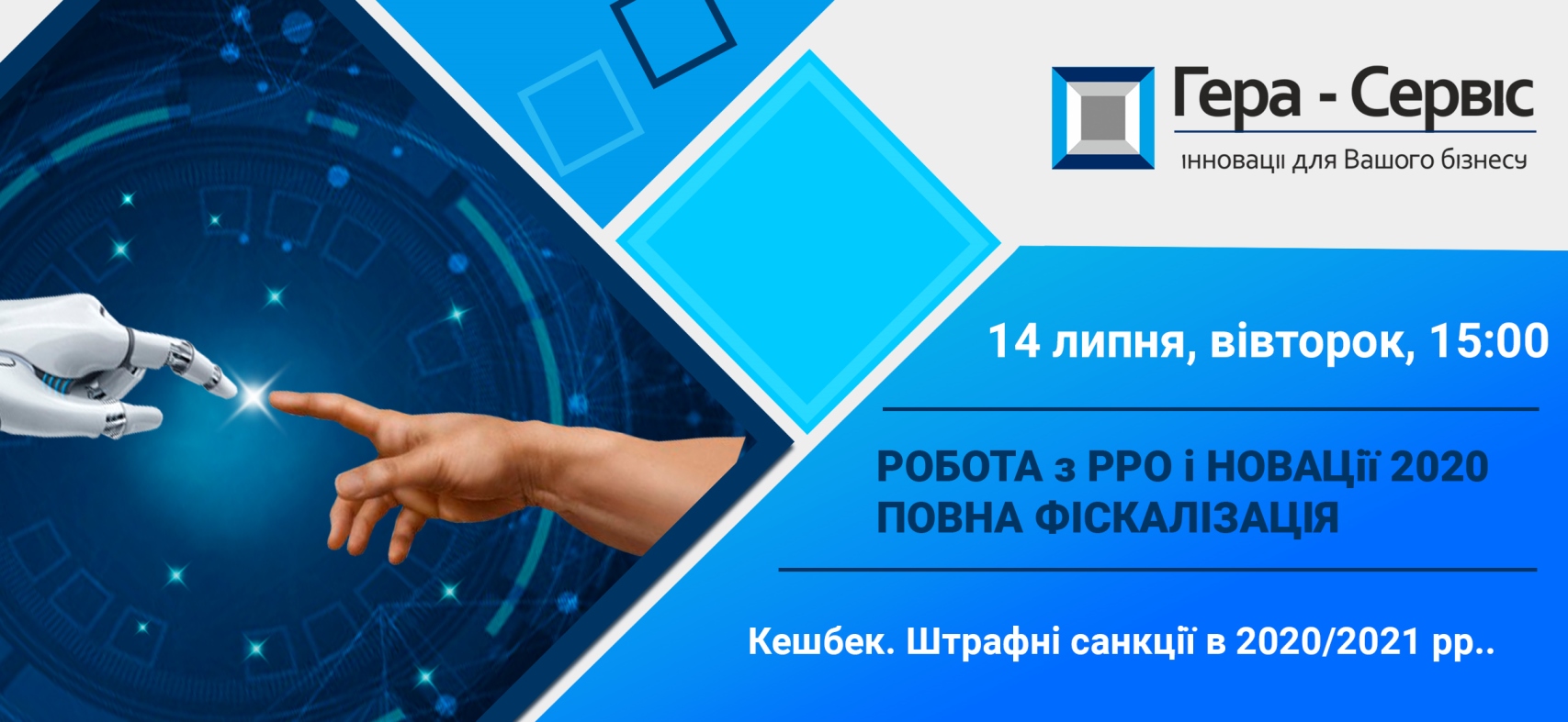 Компанія «Гера Сервіс» проведе безкоштовний вебінар на тему «Робота з РРО і НОВАЦІЇ. Повна фіскалізація», котрий відбудеться 14 липня о 15:00.