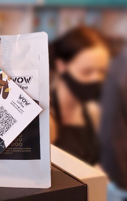 Які зерна в пачці кави, де було вирощено урожай, як обробили зерно, як його обсмажили. Все це можна дізнатися із сертифіката автентичності, просканувавши QR-код, який має кожна упаковка кави, випущена WOW Coffee. Всі дані сертифікату записані в блокчейн і їх неможливо підробити.