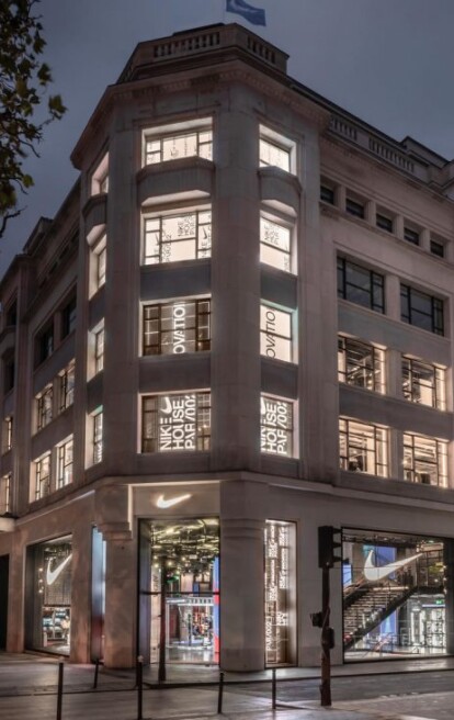 30 липня гігант спортивного взуття і одягу відкрив флагман площею 2415 кв. м на знаменитих Єлисейських полях в Парижі. Масивний чотирьохповерховий простір — третій магазин Nike, який відкриється під його банером «Будинок інновацій» (інші знаходяться в Манхеттені і Шанхаї). Це відбувається слідом за відкриттям ще одного нового формату, Nike Rise, в Гуанчжоу, Китай.