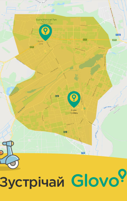 Іспанський сервіс Glovo продовжує збільшувати зону покриття сервісу в Київській області та підключати нові населені пункти. Сьогодні послуги швидкої кур єрської доставки Glovo стали доступними для жителів Бучі та Ірпеня. Зона покриття доставки в Ірпені із заходу до сходу простягається від вулиці Київської до Гостомельського шосе, а на півдні обмежена вулицею Достоєвського. Північна частина Ірпеня межує із зоною доставки у Бучі, де до покриття сервісу увійшла практично вся територія міста. В обох містах сервіс Glovo доставлятиме з 10:00 до 23:00.