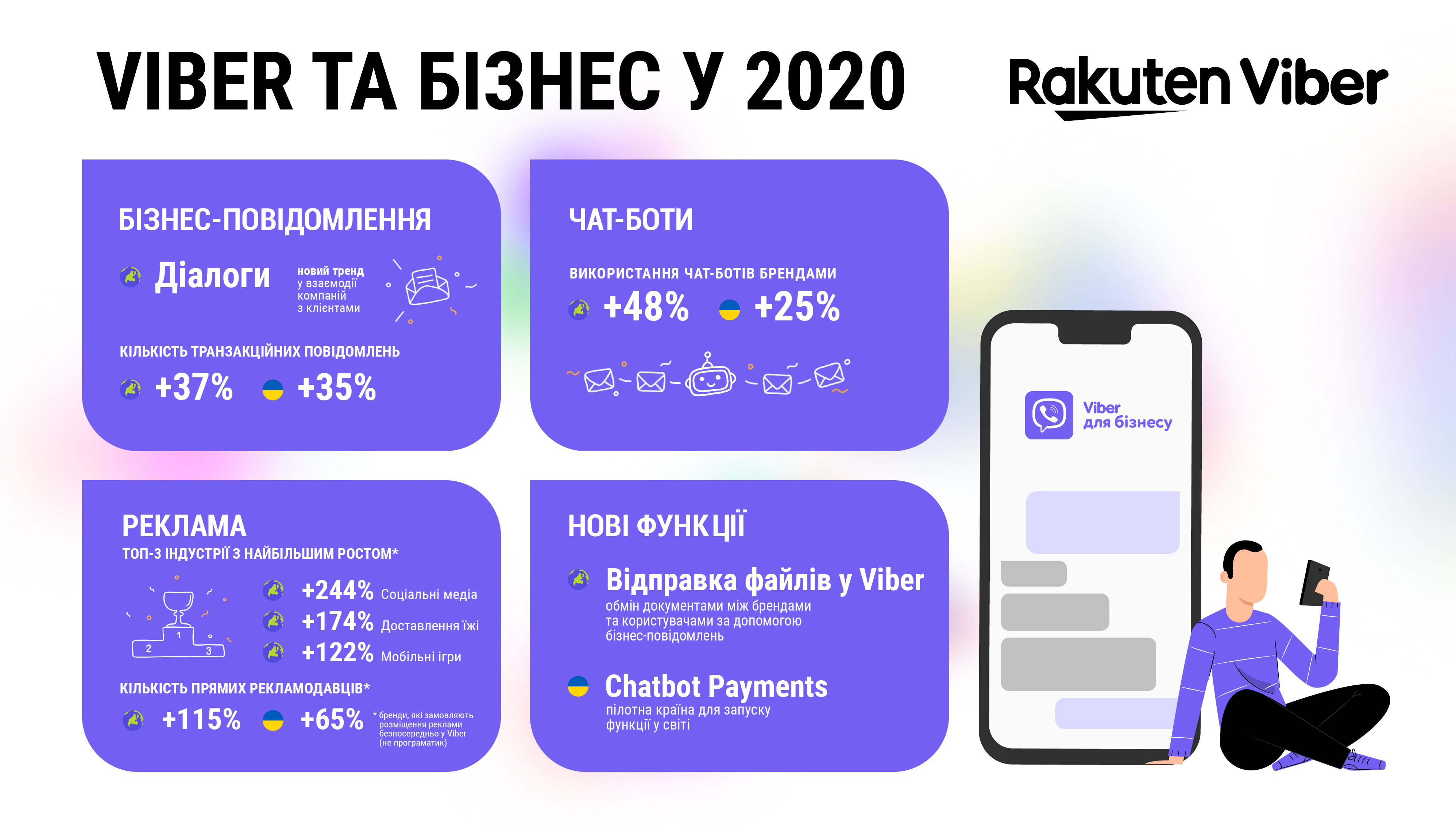 Київ, 26 січня, 2021 року — Rakuten Viber, провідний додаток для обміну повідомленнями в Україні, підбив підсумки 2020 року і визначив ключові глобальні та локальні тенденції у взаємодії бізнесу з аудиторією.