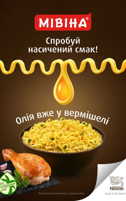 Nestle нагадала, що бренд «Мівіна» заснував категорію вермішелі швидкого приготування в Україні 25 років тому, і тепер першим запустив оновлювався продуктового сегмента.