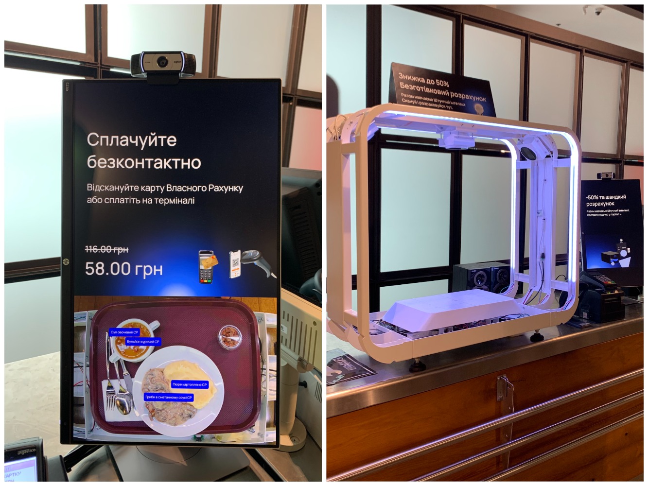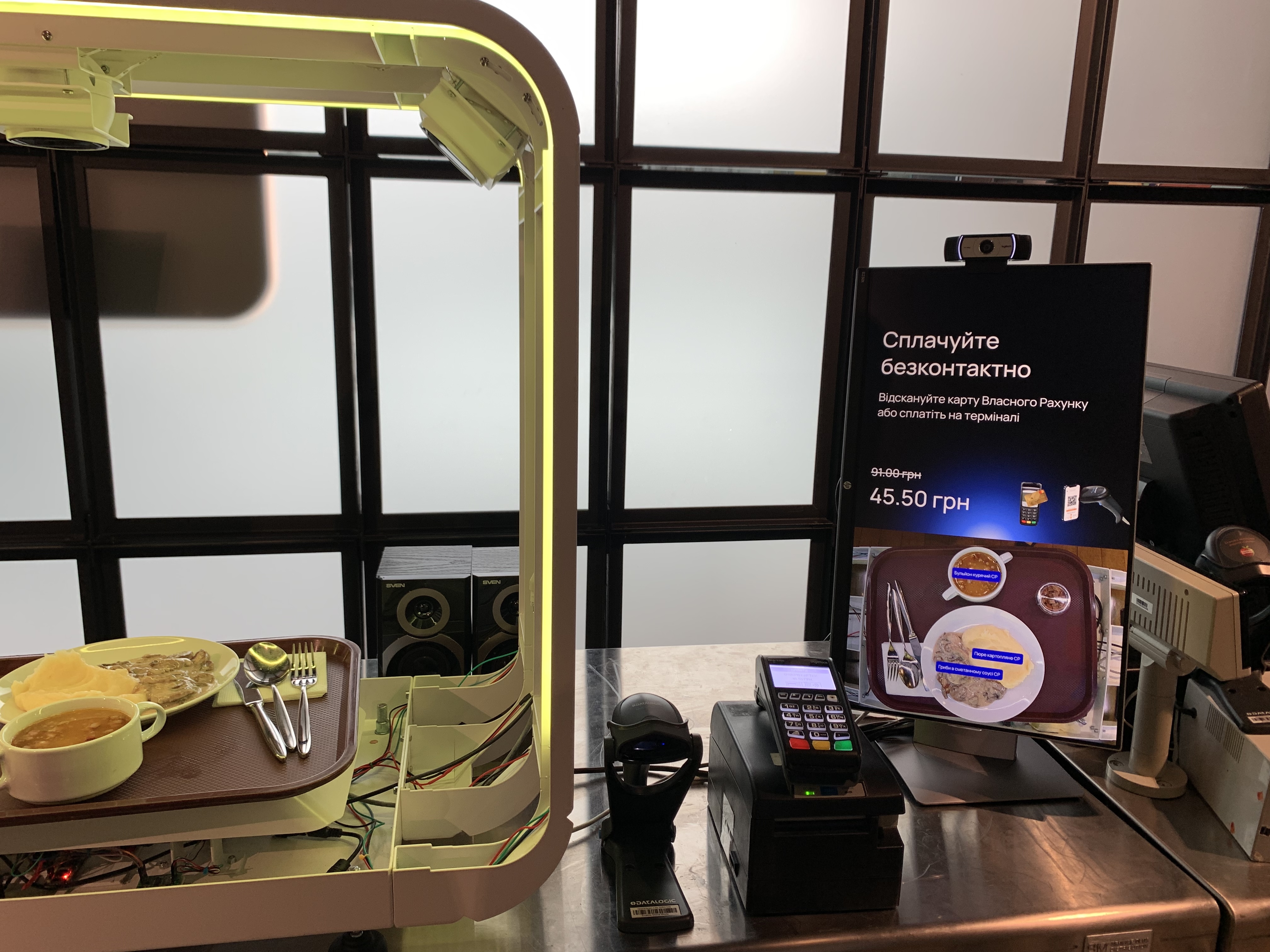 • Гості ставлять тацю з їжею і напоями у «портал» нейронної мережі. Кольорові світлові індикатори разом з інтерактивним екраном дають підказки про перебіг процесу: режим очікування і готовності, розпізнавання, оплата. Невдовзі буде додана можливість голосового спілкування з гостями.