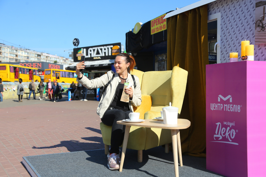 Крісло, що подорожували по Києву, зʼявлялося випадково в людних місцях столиці, його помічали в парках і біля метро. На ньому можна було зручно посидіти та навіть поговорити з ним. А 9 вересня в цьому ж кріслі на білборді висотою 4 метри сиділа дівчина і пила ранкову каву.