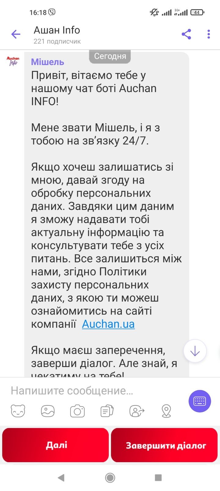 доступ: viber://pa?ChatURI=auchaninfo або через qr-code