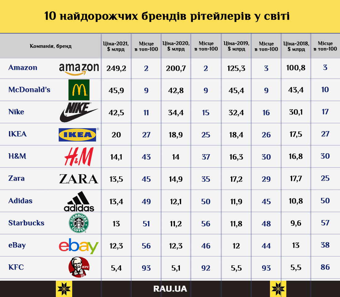 Interbrand назвала топ-10 найдорожчих рітейл-брендів світу