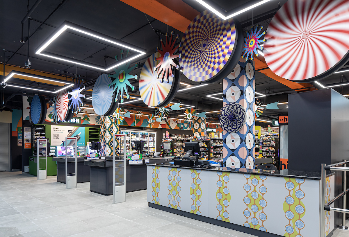 Дизайн магазину створює особливо яскравий колорит: всередині розміщений флюгер у вигляді літери «С», що вказуватиме шлях та напрямок вітру. Також у «Сільпо» гості зможуть побачити рухомий витвір мистецтва ― гіпнотичну скульптуру, що створює ефект оптичної ілюзії, від якої надзвичайно важко відвести погляд.