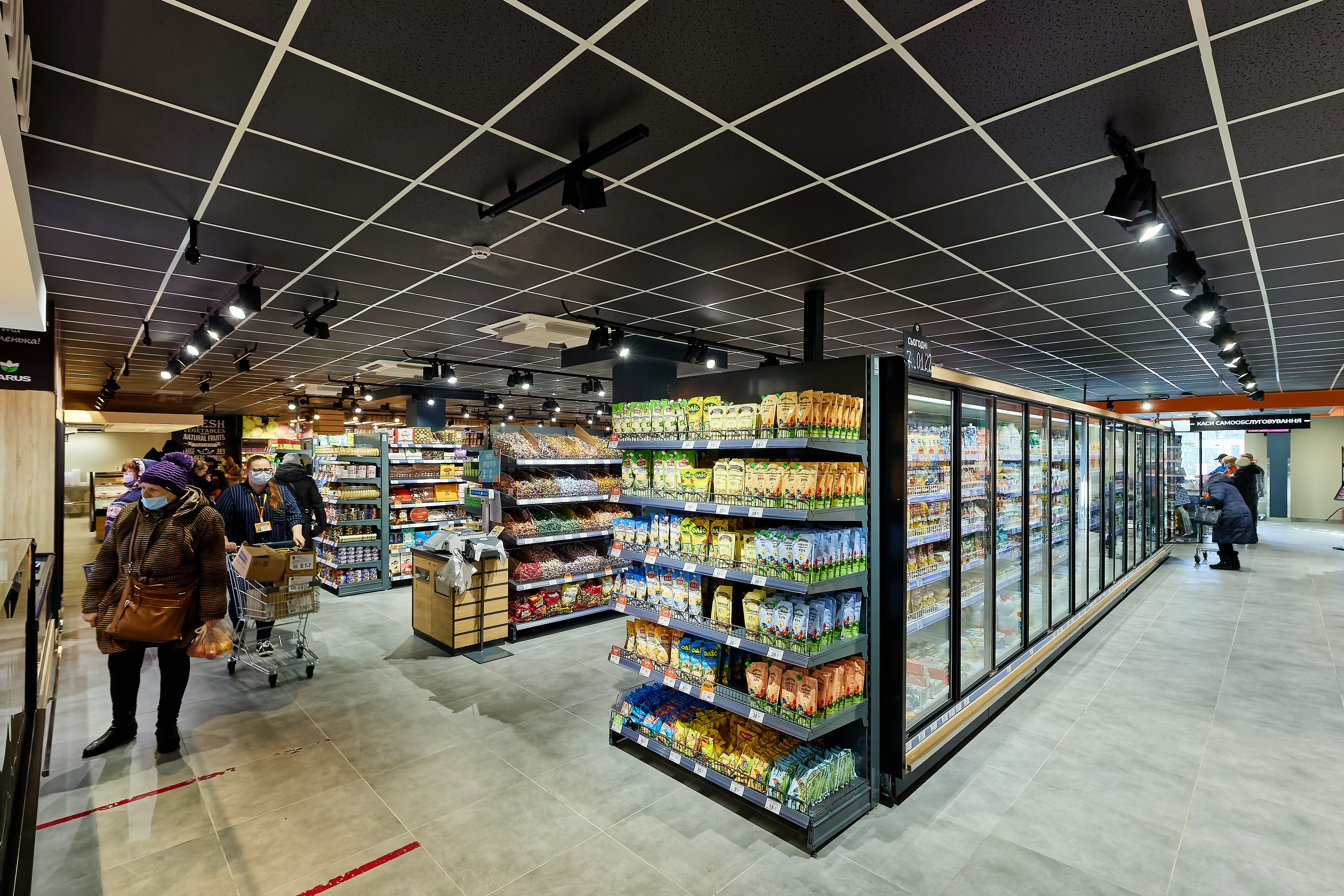 На площі 750 кв м. продається м’ясо, ковбаси, риба, свіжі овочі та фрукти, молочна продукція, консерви та кондитерські вироби, а також — заморожені страви. Все для того, аби придбати товари для щоденного харчування та до святкового столу.