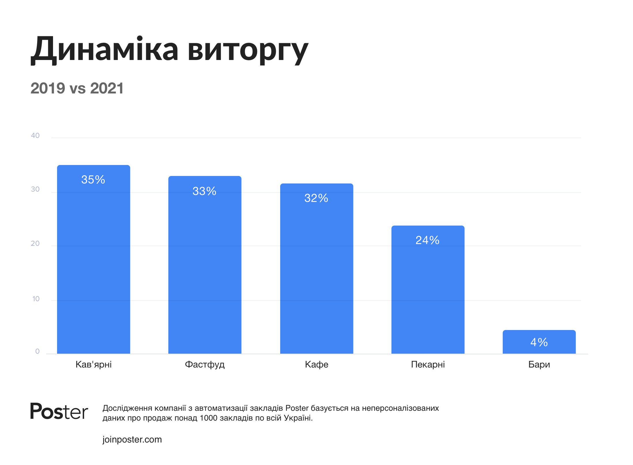 Дослідження Poster засноване на неперсоналізованих даних про продаж близько 1000 закладів громадського харчування України, які працювали у 2019-2021 роках.