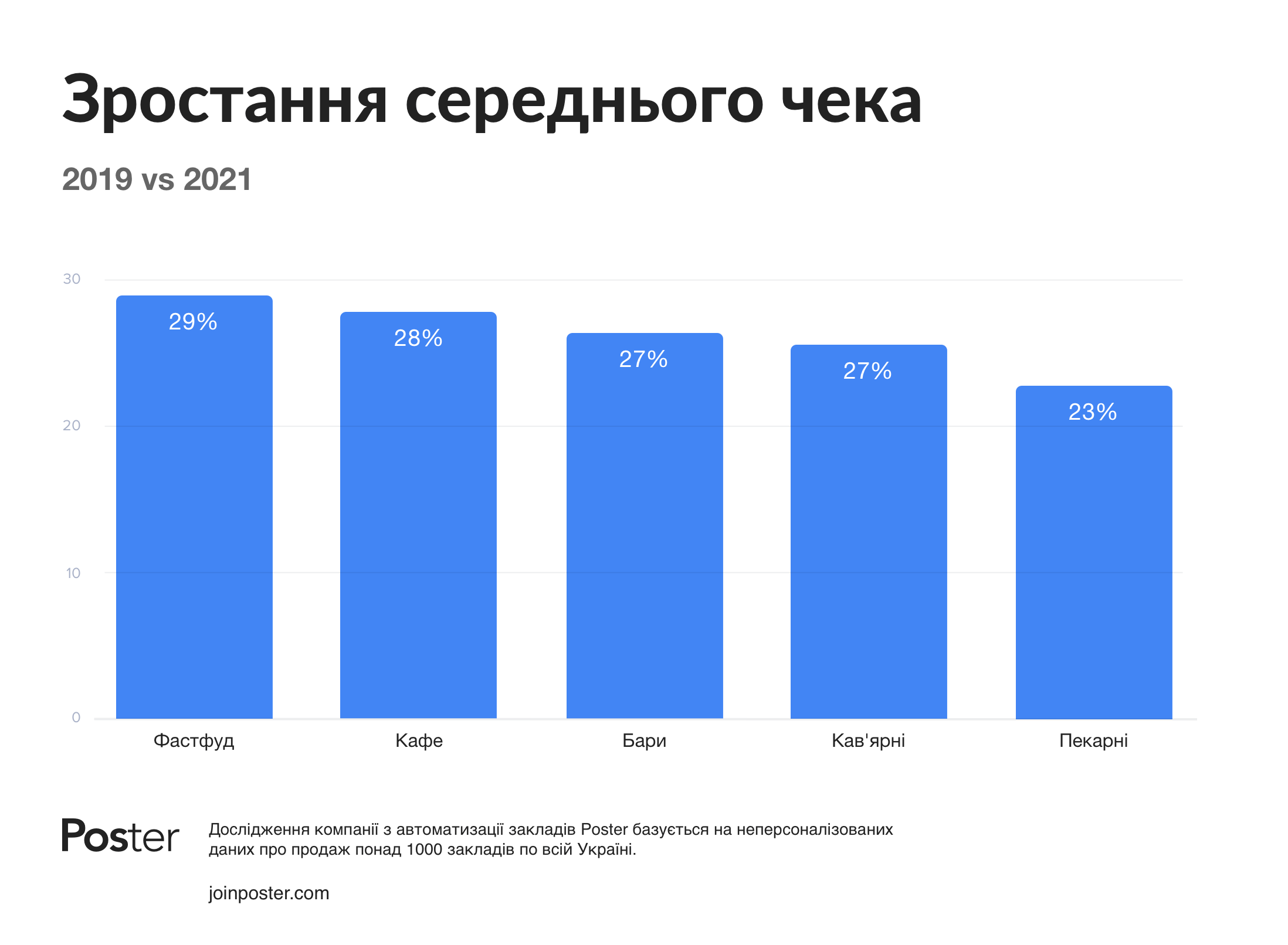 Ще один рік із «короною»: як змінилася виручка та середній чек закладів України у 2021 році? — дослідження Poster