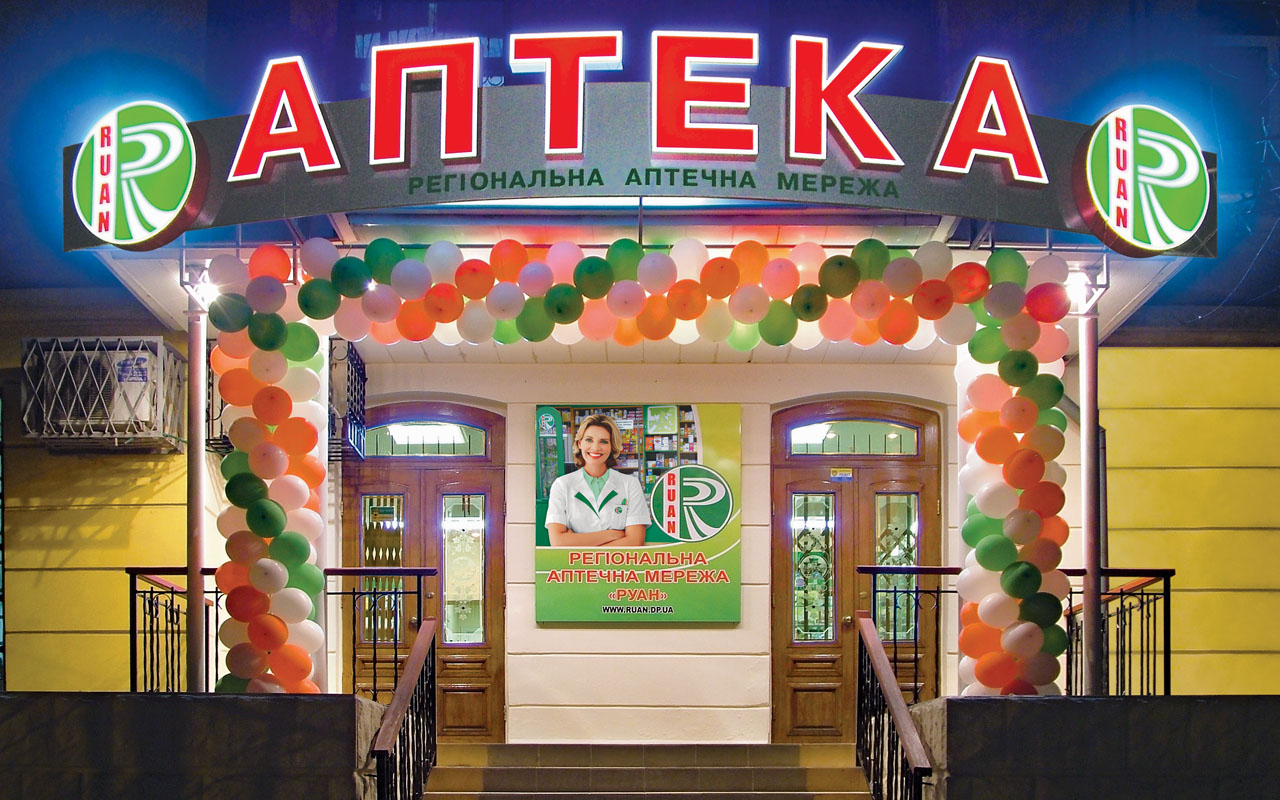 Регіональна дніпровська мережа аптек «РУАН» була заснована у 1997 році і налічує понад 170 торгових об’єктів у Київській, Полтавській, Запорізькій та Дніпропетровській областях.