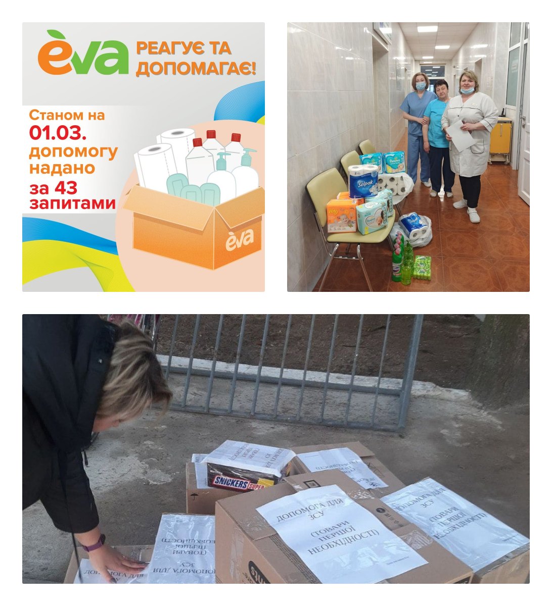Мережа EVA працює в умовах воєнного стану та забезпечує громадян товарами першої необхідності. Ритейлер співпрацює з місцевою владою та штабами територіальної оборони міст.
