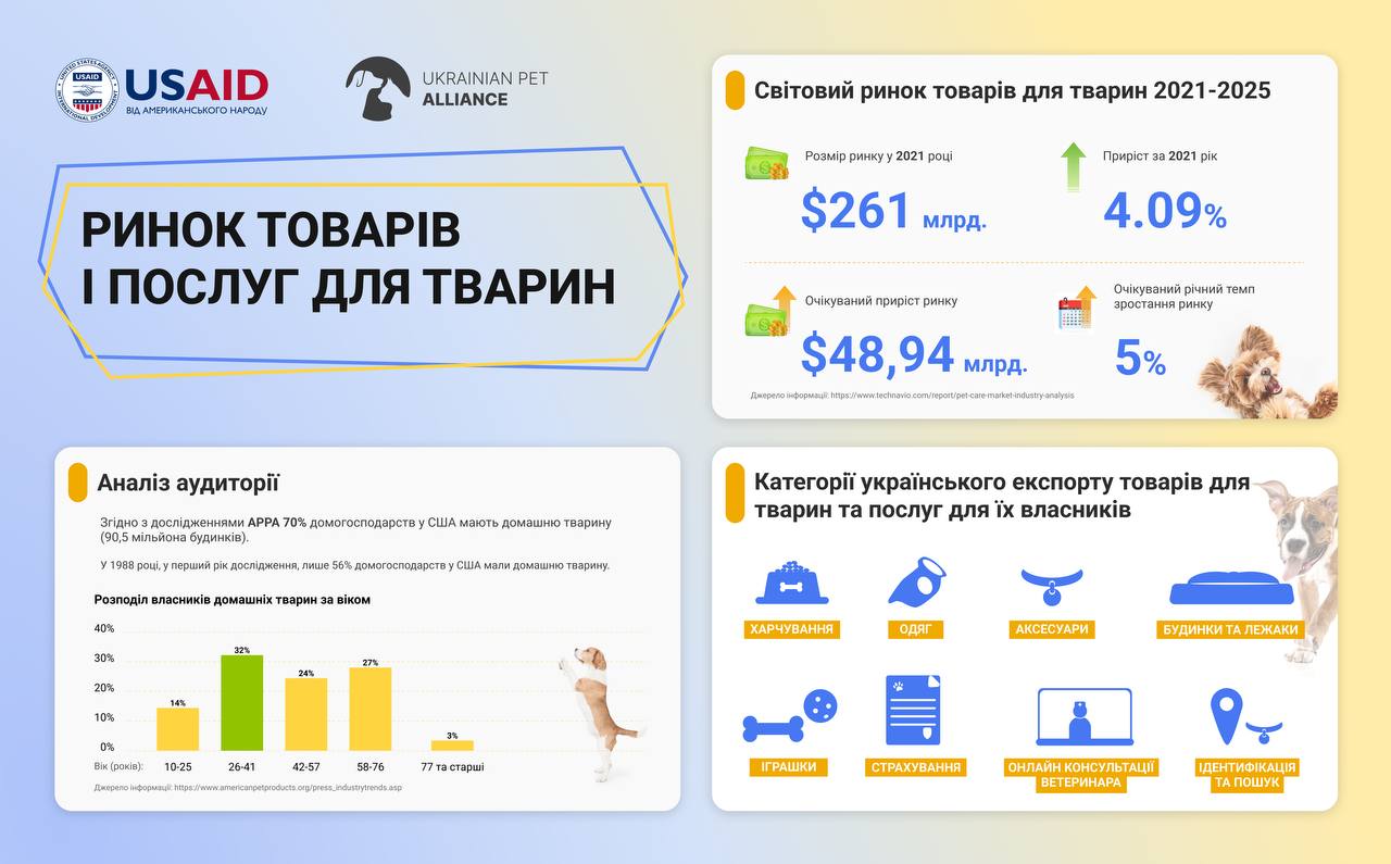 Програма USAID "Конкурентоспроможна економіка України" та низка українських виробників pet-товарів домовились про об'єднання зусиль у формуванні позитивного іміджу української продукції для тварин на ринках Європи, США та Канади для спільного просування продукції та посилення економіки країни.