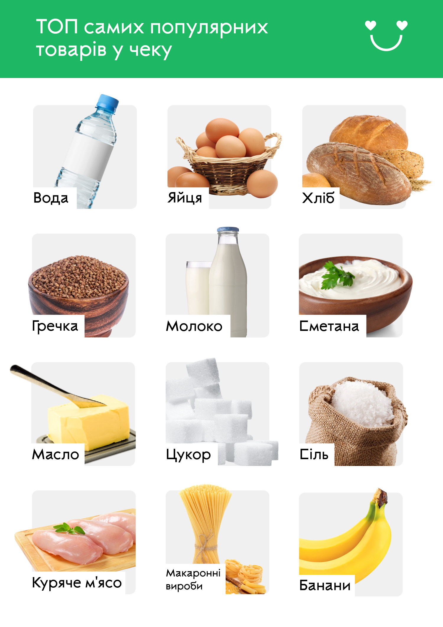 Якщо говорити про наповнення споживчого кошика під час воєнного стану в Україні, він не суттєво відрізняється від мирного часу. За даними сервісу доставки продуктів Zakaz.ua, у 2021 році в українських супермаркетах найчастіше замовляли додому хліб, воду, молоко, сік, куряче м’ясо, яйця, картоплю та банани. Ці товари зустрічалися більш ніж у 50% кошиків онлайн-покупців сервісу. Під час воєнного стану майже всі ці позиції, окрім картоплі та соку, збереглися й так само часто зустрічаються в чеку покупців. Проте додатково з’явилися наступні товари: гречка, сметана, масло, цукор, сіль та макаронні вироби. Варто відзначити, що ажіотаж на сіль має тимчасовий характер та був спровокований в даному періоді на фоні новини про припинення роботи підприємства «Артемсіль». Наприкінці травня від клієнтів були зафіксовані замовлення від незначних 5-ти пачок солі до ваги понад півтори тонни. Товар швидко був розпроданий та зметений з усіх полиць супермаркетів протягом тижня. Проте, сіль від дорогих виробників залишилися в асортименті.