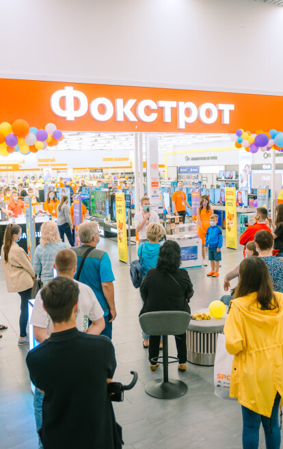 Зазначимо, Фокстрот у ТРЦ Retroville є одним зі столичних флагманів мережі електроніки. Загальна площа магазину — 1100 м2, із неї торгової — 890 м2. Його офіційне відкриття відбулося рівно два роки тому: у липні 2020 року, що запам’яталося в історії компанії, як перше після послаблення карантинних обмежень весняного локдауну-2020.