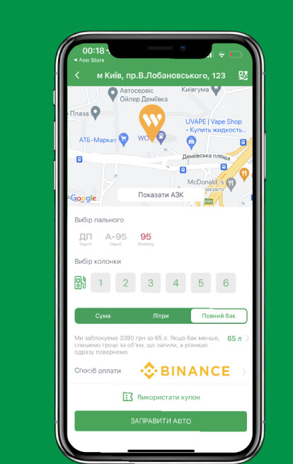 Мережа АЗК WOG стала партнером блокчейн-екосистеми Binance та запустила можливість оплати криптовалютою за пальне за допомогою Binance Pay.