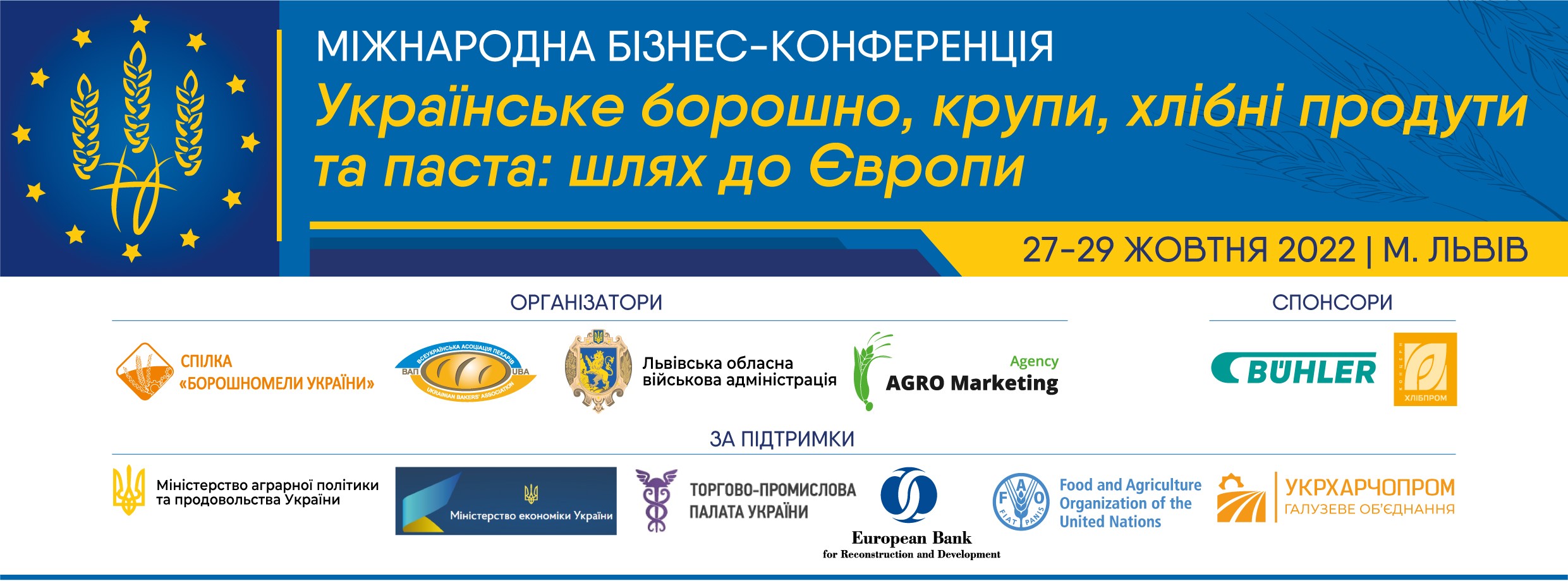 27-29 жовтня у м. Львів відбудеться Міжнародна бізнес-конференція «Українські борошно, крупи, хлібні продукти та паста: шлях до Європи». В ході заходу планується зібрати понад 200 ТОП-менеджерів та власників борошномельних, круп’яних, хлібопекарських підприємств та виробників макаронних виробів, ключових фахівців галузі та представників компаній-постачальників продукції, обладнання й технологій.
