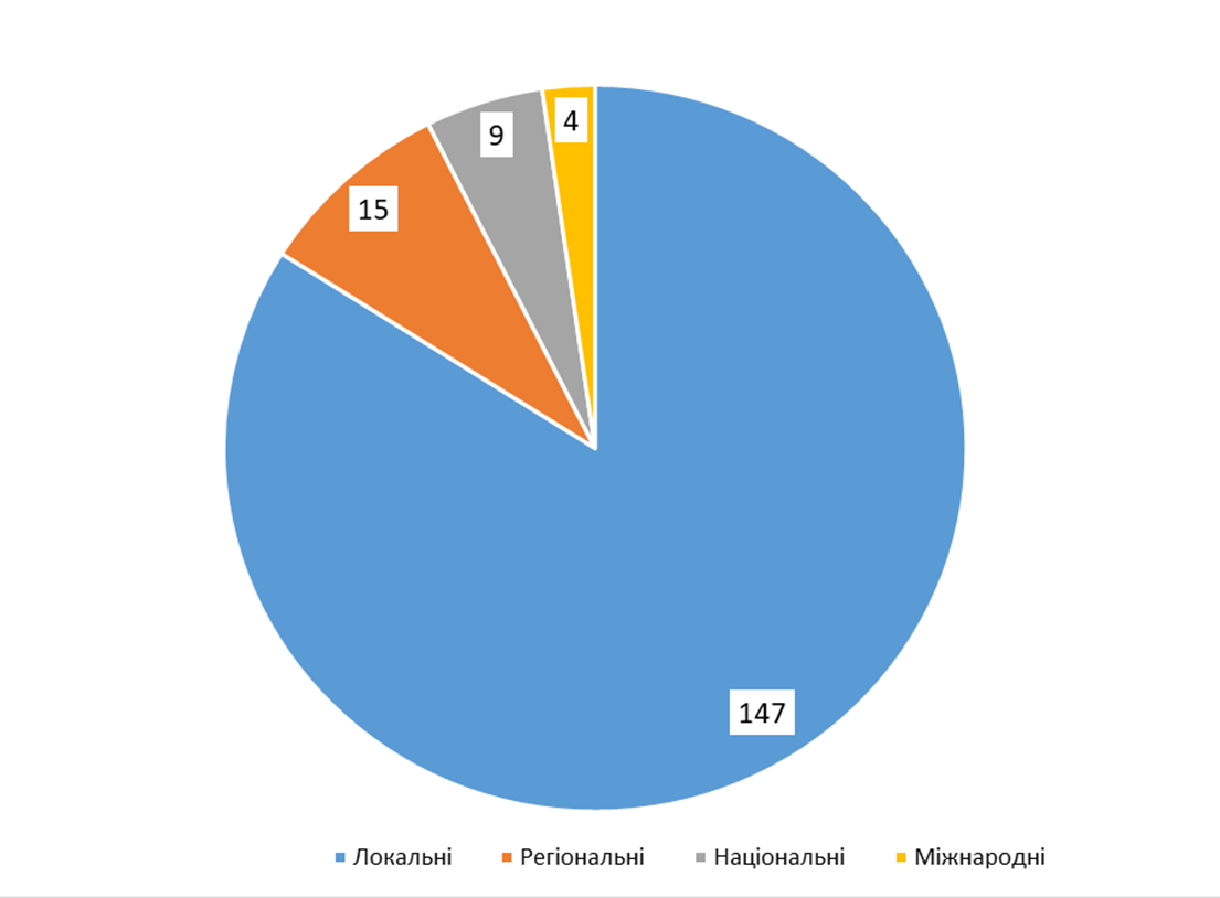 Виходячи з класифікації GT Partners Ukraine, переважну більшість функціонуючих сьогодні в країні продовольчих ритейлерів складають локальні компанії (тобто оператори, які працюють в межах 1 регіону — таких близько 85% від загального списку).