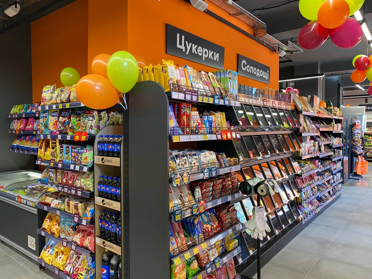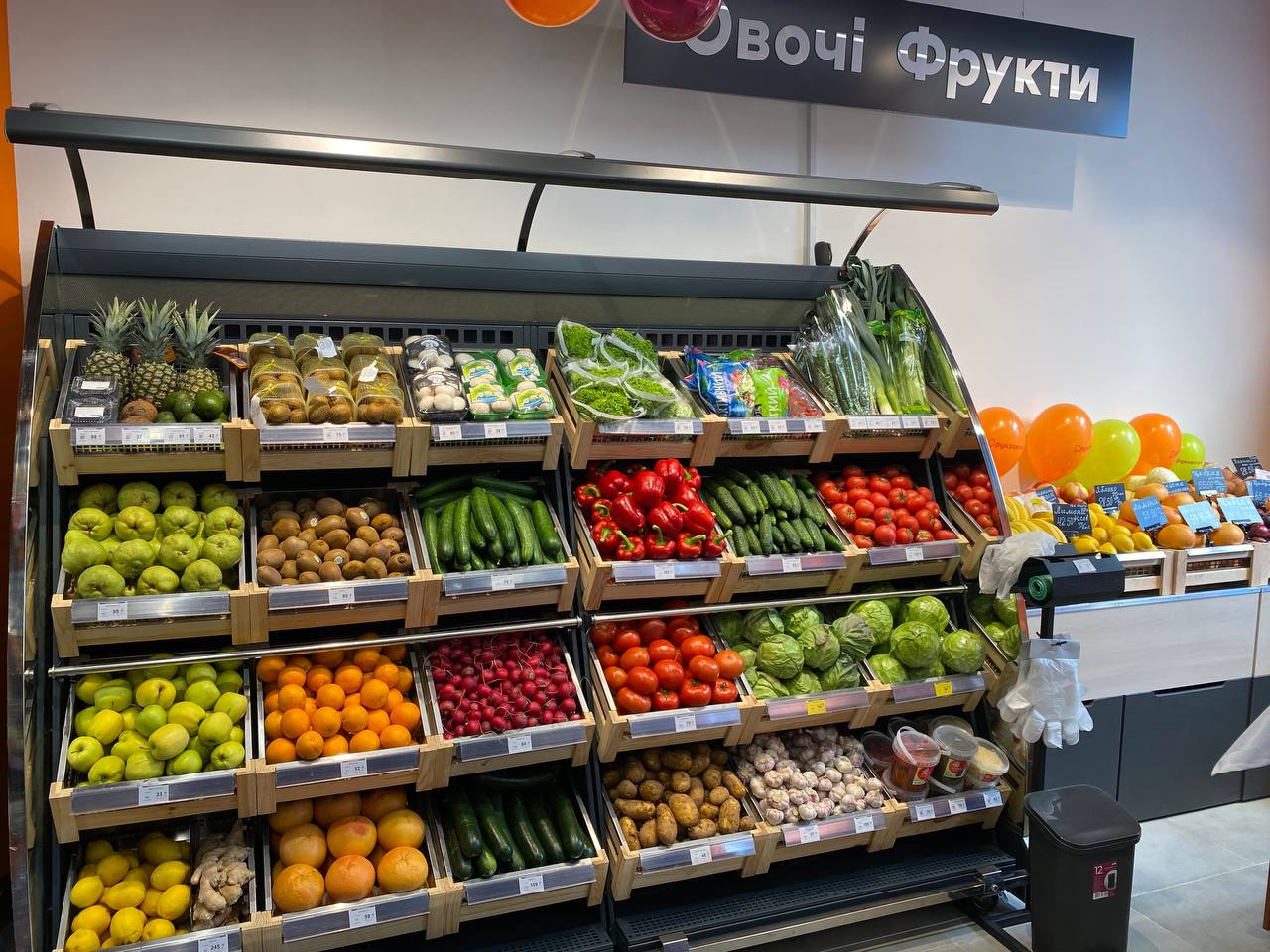 В оновленому супермаркеті збільшили торговий зал, його площа склала 170 кв.м. Окрім базового асортименту овочів, фруктів, свіжого мʼяса та власної випічки, клієнтам тут пропонують піцу та продукти гриль.