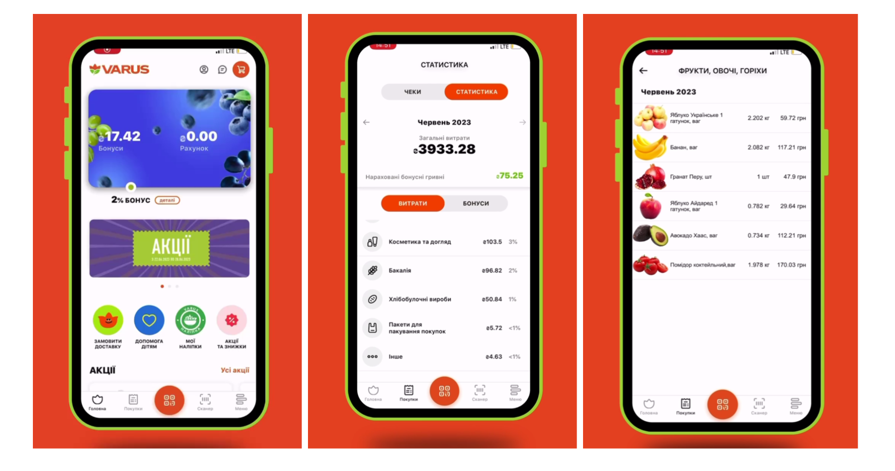 «Мережа VARUS одна з перших серед торговельних мереж впровадила формат відображення витрат у мобільному додатку. Зазвичай цю практику використовують у банківських сервісах, але клієнти супермаркетів також хочуть розуміти динаміку своїх витрат та планувати бюджет на покупки», — розповідає Дмитро Воєвода, Head of Digital VARUS.