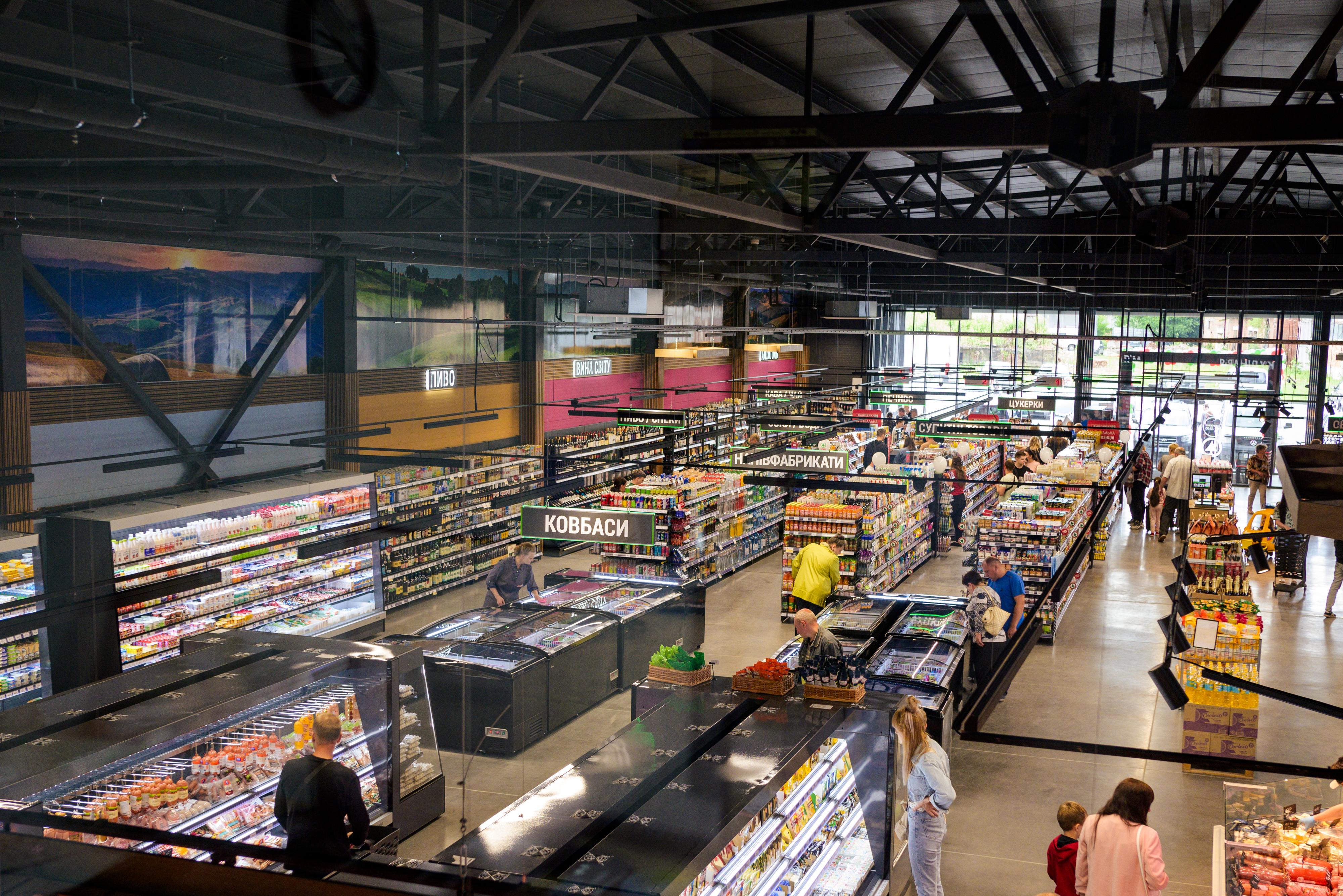 Супермаркет пропонує широкий асортимент свіжих продуктів, задовольняючи найвибагливіші смаки. Тут можна знайти смачні овочі та фрукти, свіже м’ясо та рибу, ароматну випічку з власної пекарні, замовити піцу та придбати рибу з власної коптильні.