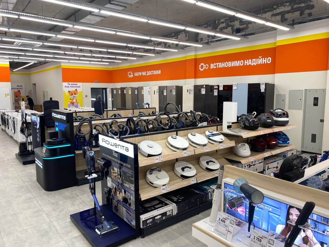У магазині представлено 24 бренд-зони відомих компаній, включаючи популярну продукцію Apple та телевізори Samsung, LG та багато іншого. Товарна матриця магазину включає розширений асортимент телевізорів великих діагоналей, преміум моделей смартфонів, великий вибір пральних машин, холодильників, вбудованої техніки, пилососів, кавових та кухонних машин, грилів. Значно збільшилась кількість техніки для краси та здоров’я, а також посуду.