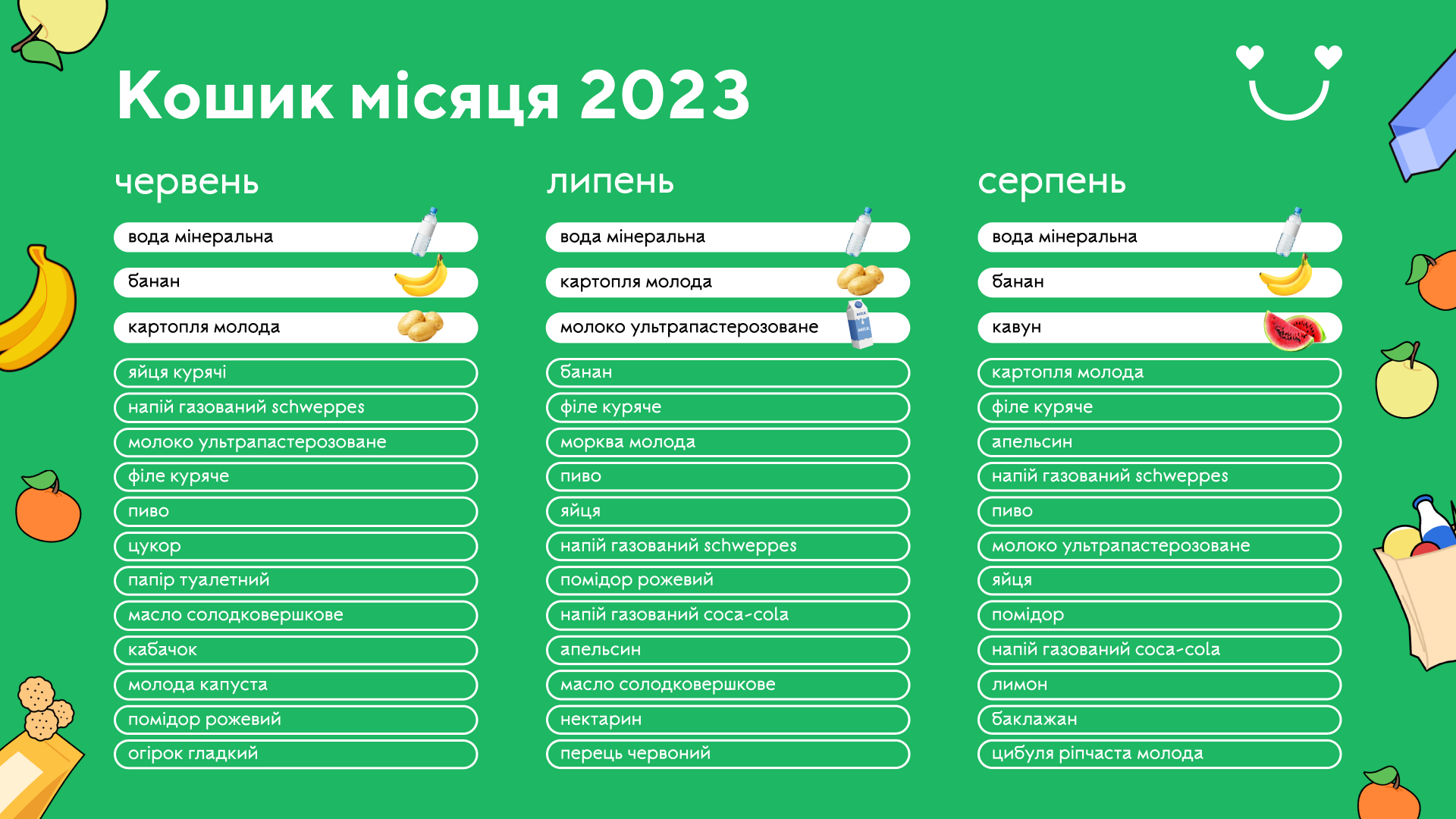 Загалом у кошиках червня серед найпопулярніших позицій були присутні наступні товари: