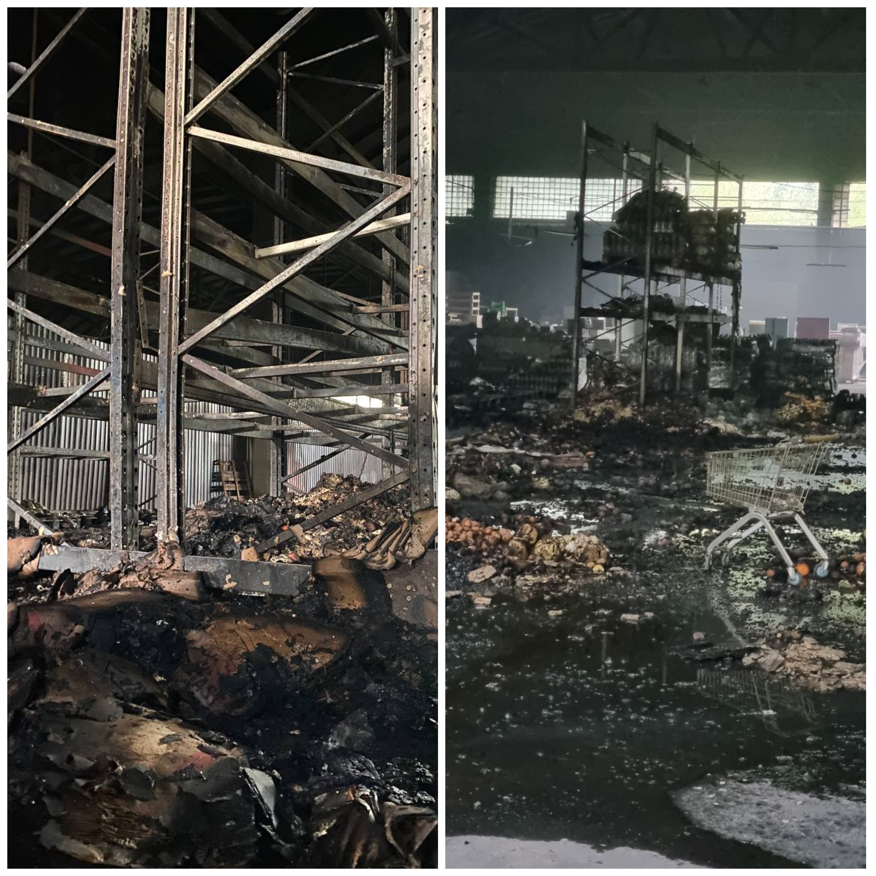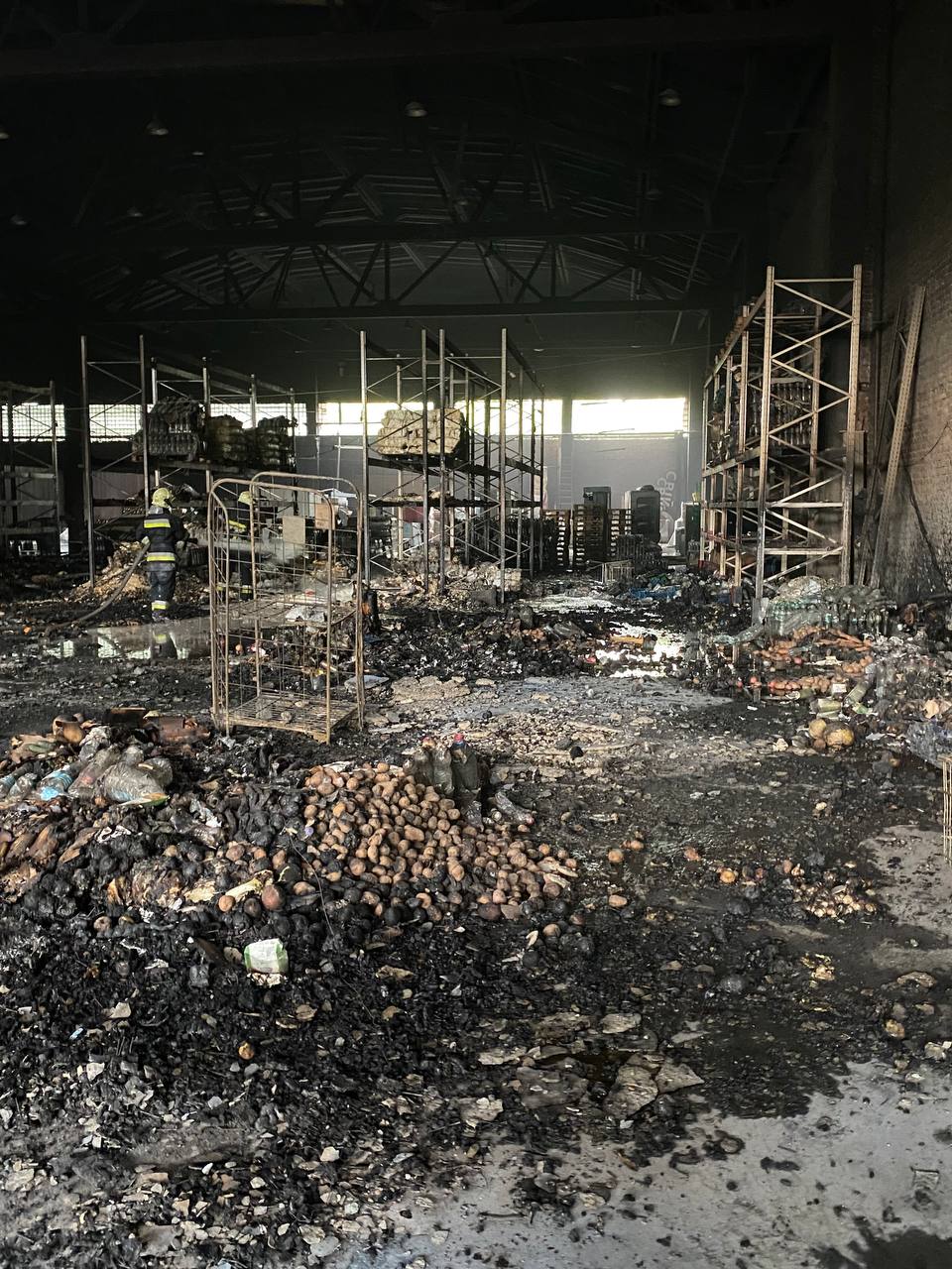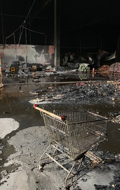 Внаслідок падіння БпЛА всередині складського приміщення мережі «Свій Маркет», виникла пожежа, яка спричинила знищення товарів, техніки та обладнання.