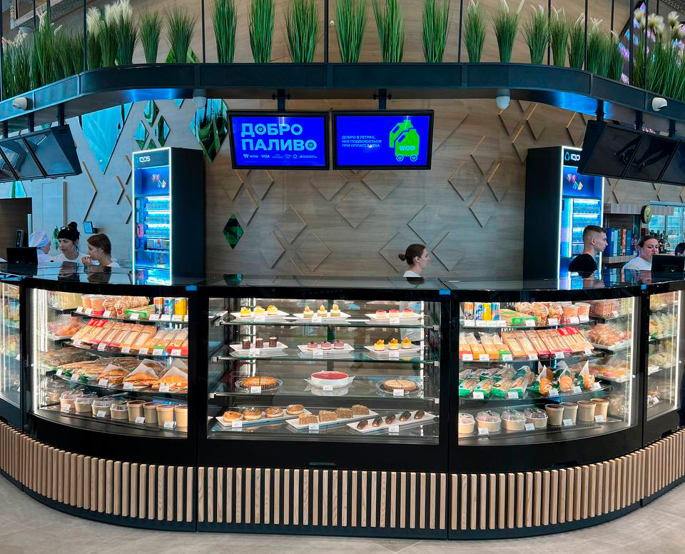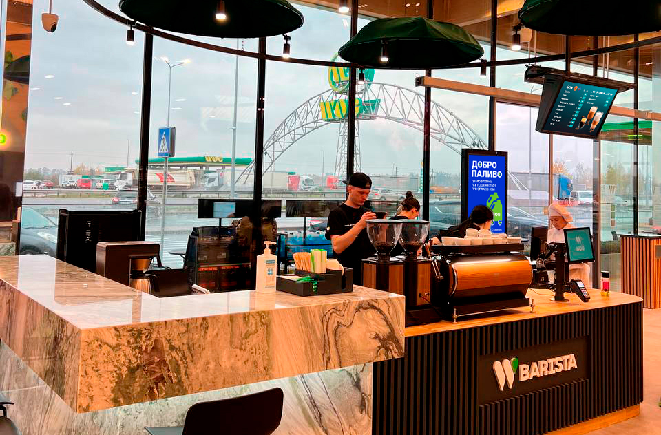 «Це перший АЗК в Україні, де створено унікальний фудхол з кількома закладами харчування, холодною й теплою вітринами. Каву можна приготувати самостійно на надсучасній кавомашині Franke. Їх тут 5, що дає можливість покращити якість обслуговування та розвести трафік. Подбали й про кавоманів, для яких кава — не просто напій, а ритуал, до якого залучені професійні баристи. На окремому кавовому острові WOG Barista залюбки зварять смачні кавові напої. На вибір гостю доступно два види зерна: 100% арабіка та кава без кофеїну, а також чотири види молока: класичне чи безлактозне, або ж рослинне — кокосове чи мигдалеве. Смак кави доповнить вишукана лінійка десертів, серед яких є корисні смаколики без цукру та глютену, а також класичні улюблені ласощі», — додала Ірина Соколовська, директор дирекції громадського харчування та Інтерсіті.