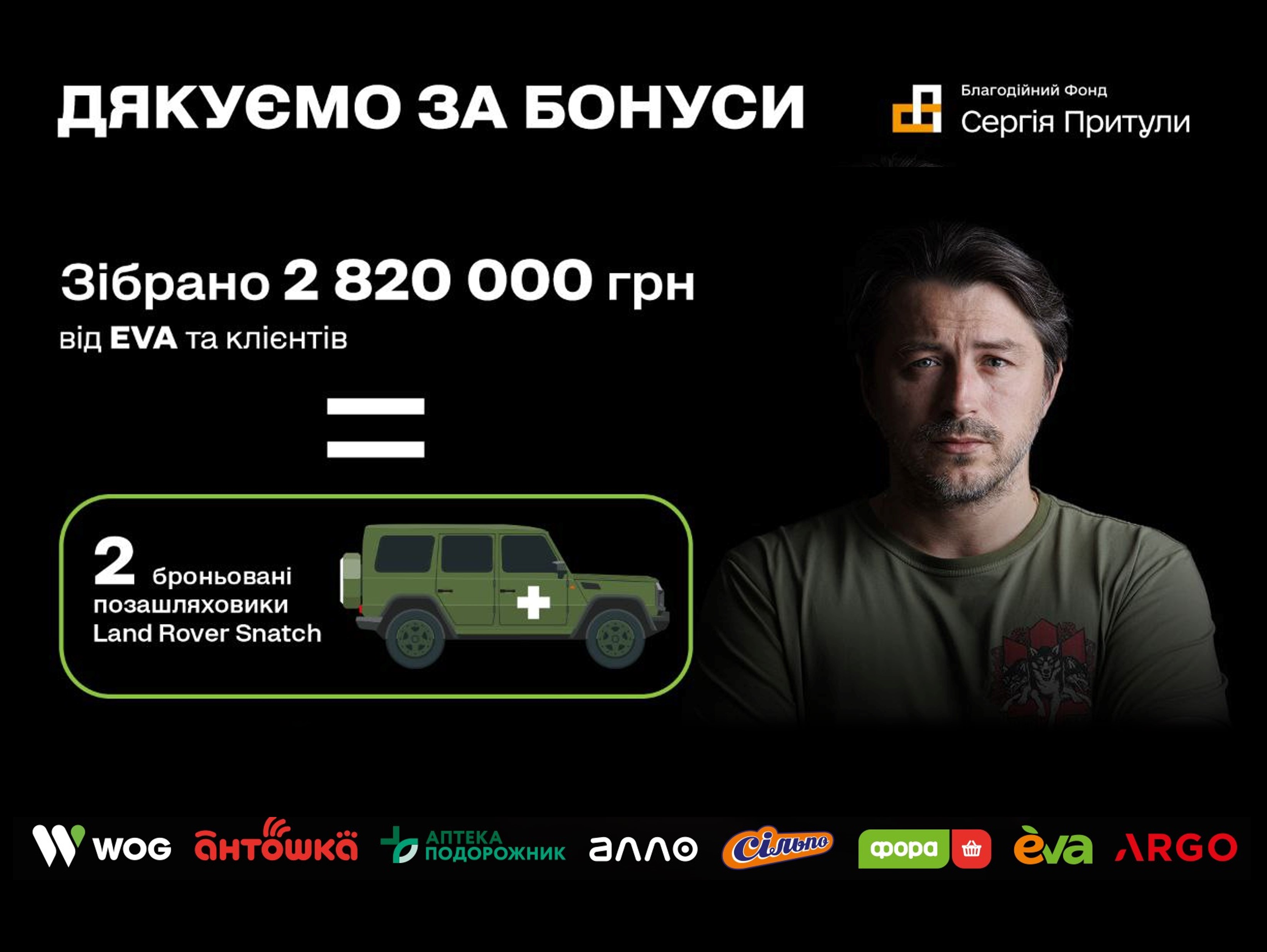 EVA та клієнти переказали понад 2,8 млн грн Фонду Притули на бронетранспорт для Сил оборони