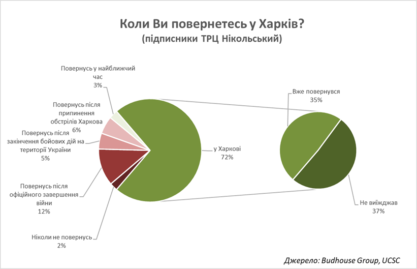 Одна з найбільших девелоперських компаній України Budhouse Group у листопаді 2023 року провела опитування підписників своїх торговельних центрів у Харкові та Херсоні з метою з’ясувати, де вони перебувають зараз та за яких умов планують повертатися.