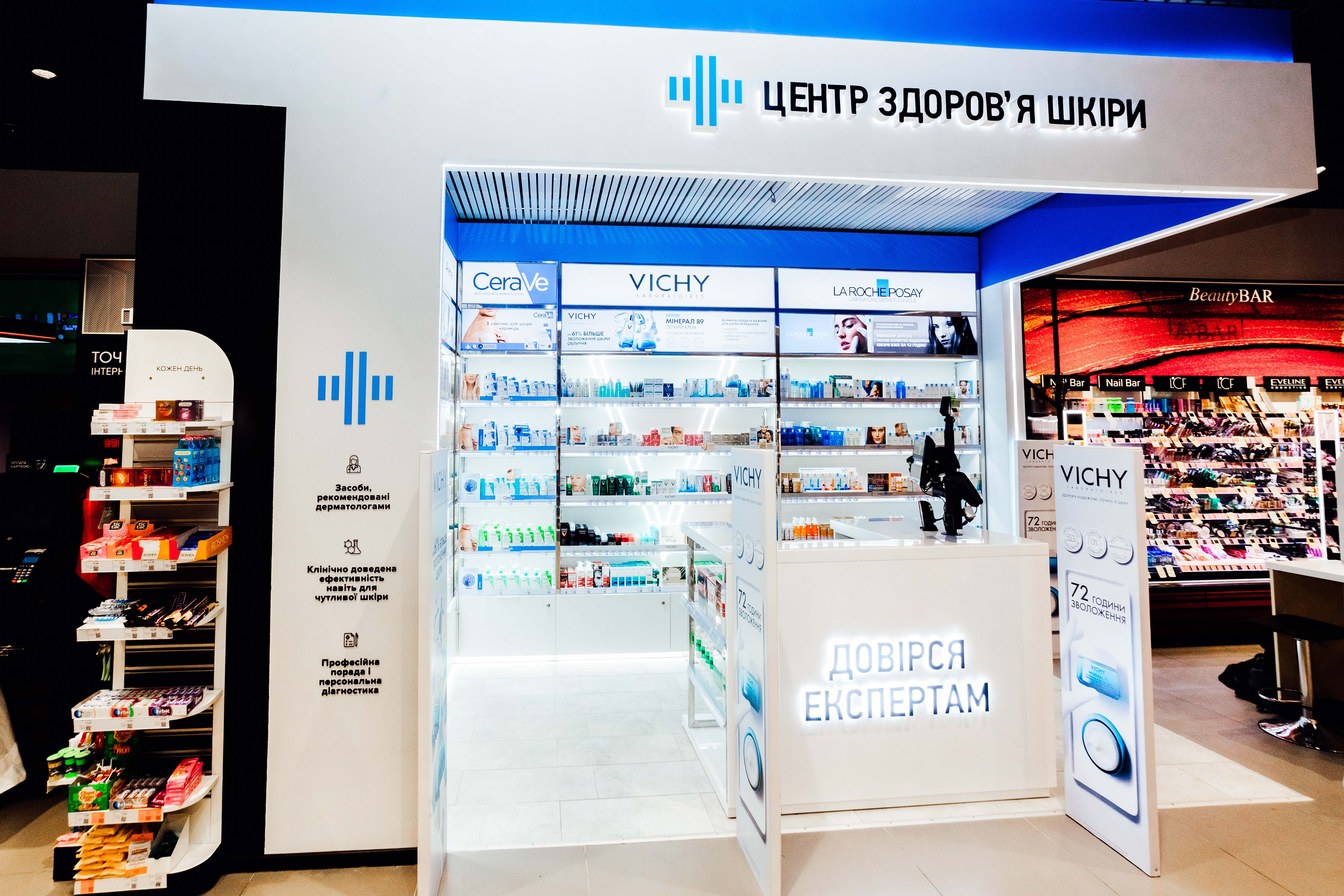 асортиментом дерматокосметики від провідних світових брендів у форматі shop-in-shop. На кінець року дві такі точки працювали у Дніпрі та Києві. У грудні компанія здійснила тестовий запуск магазину формату EVA Beauty в київському ТЦ Respublika Park.